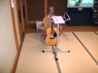 現場にマイクスタンドが無い事を忘れていまして、カラオケモニターの台をスタンド代わりに使用してみました。